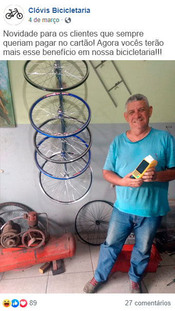 “Na minha padaria, eu não fico sem a Pro 2, além de ter o visor grande, ela imprime comprovante, as bobinas eu ganho de graça. Somos três que fazemos o uso dela. Aceita qualquer bandeira de cartão e a bateria dura o dia inteiro.”